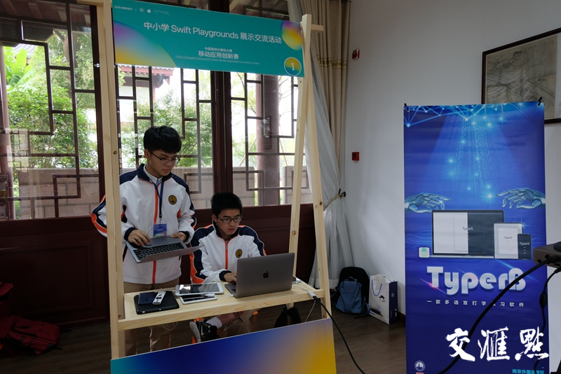 在展示會場,第一個來到展臺邊的是畢業于南外仙林的學姐,現在浙江從事媒體工作,她親切地自我介紹,并表示一眼就發現了熟悉的校服。除了媒體的關注,來自蘋果的工程師們對這個高一學生寫出來的APP也感到好奇,學習時間不超過一年就自主開發完成了整個APP的設計,令他們感到非常驚訝。同時參加展示的來自北京的兩位高二女生,也忍不住親自上陣,體驗了一把漢語拼音輸入速度測試的樂趣。 除了向評委老師展示作品,參賽隊員還講述了在應用開發中遇到的問題和趣事。在設計中文打字模塊時,原本軟件采用的是類似搜狗的拼音輸入法,設計完成后,外教老師幫忙測試,當他們輸入漢語拼音后,四個聲調的同音漢字全部呈現在備選字窗口中,讓他們無從選擇、非常崩潰,大大影響輸入速度。后來范為達、周鈺茗對軟件進行了改進,改為采用類似微軟雙拼的輸入法,外教感覺“好用多了”。 比賽結果于10月27日在浙江大學求是大講堂公布,他們的作品Typer獲得了一等獎。梁笑老師表示,后期他們會對軟件進一步改良,希望以后能夠運用到國際高中的教學中,成為真正方便大家使用的一款蘋果上架APP。 交匯點記者 葛靈丹 通訊員 郝也