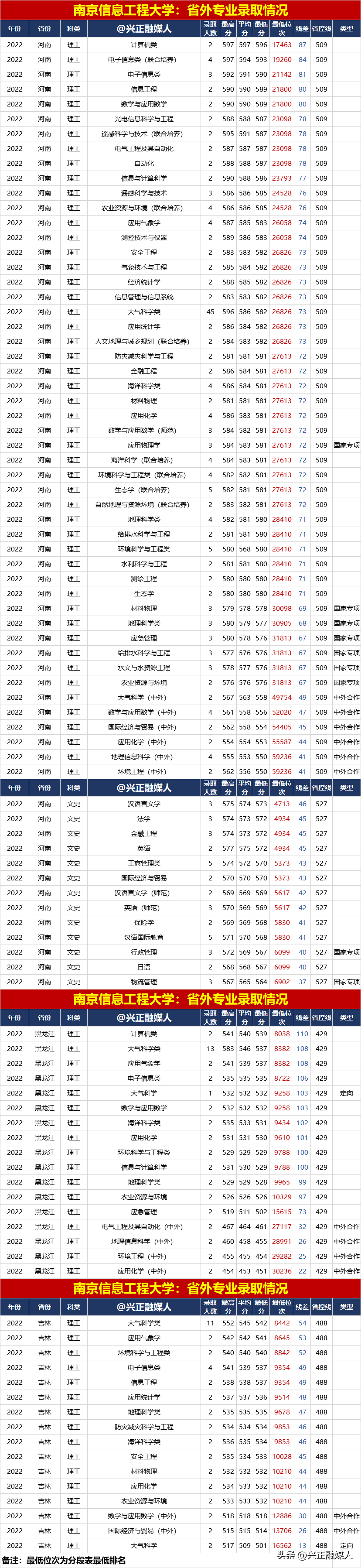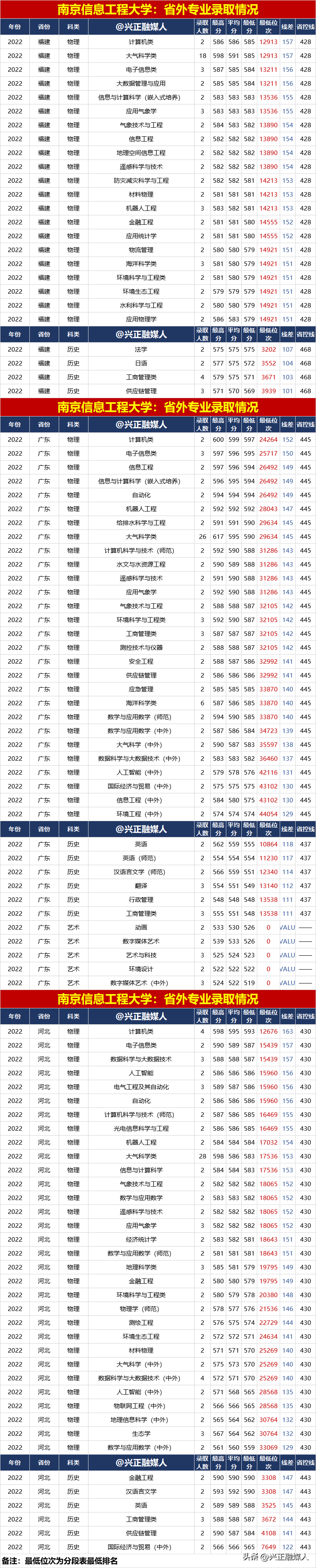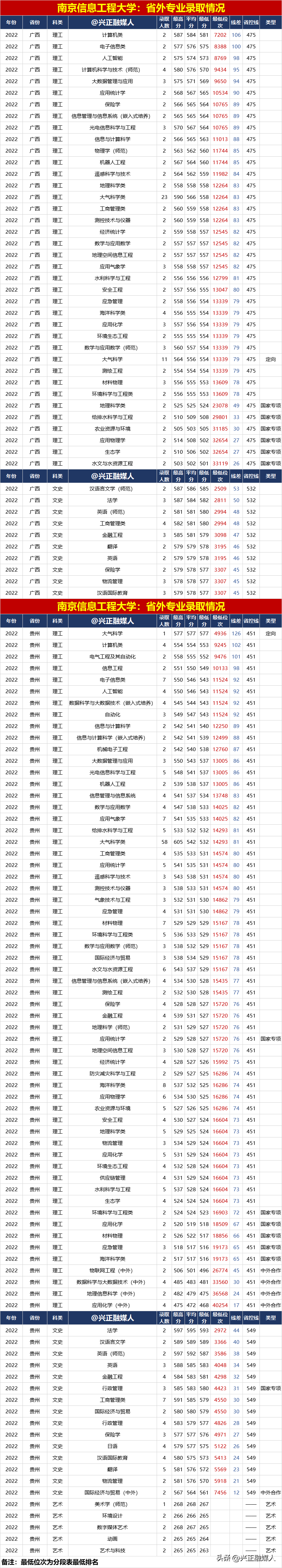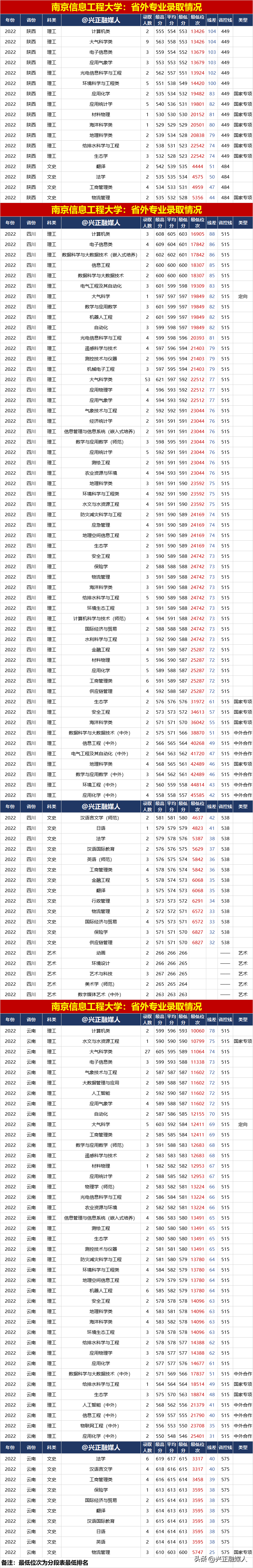 南京信息工程大學2022年分省分專業錄取匯總(內3外1),2023屆請收藏!