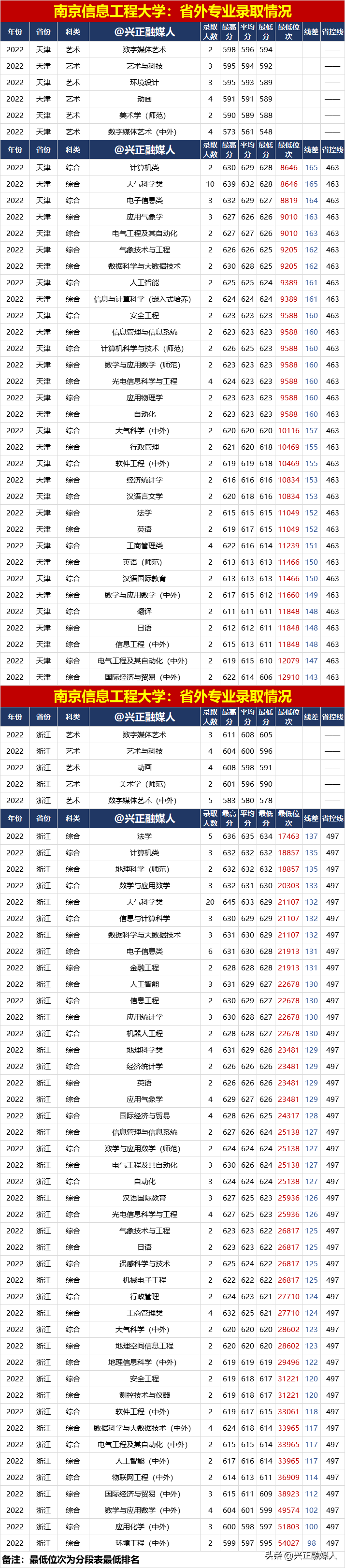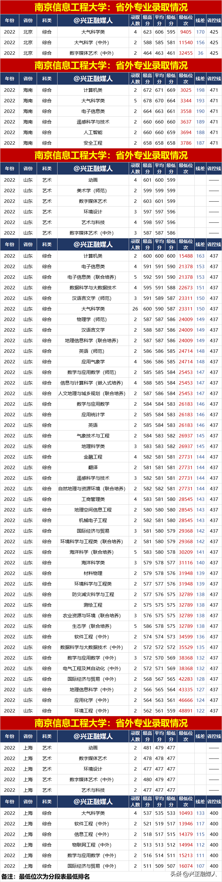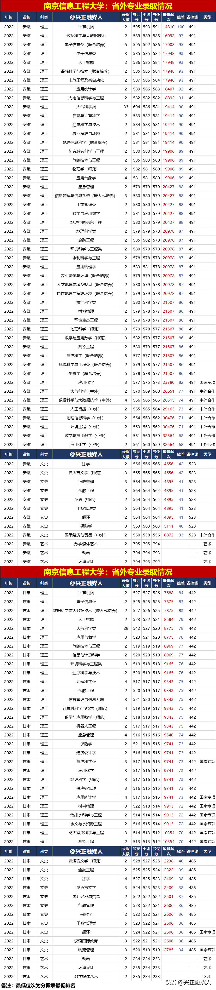 南京信息工程大學2022年分省分專業錄取匯總(內3外1),2023屆請收藏!