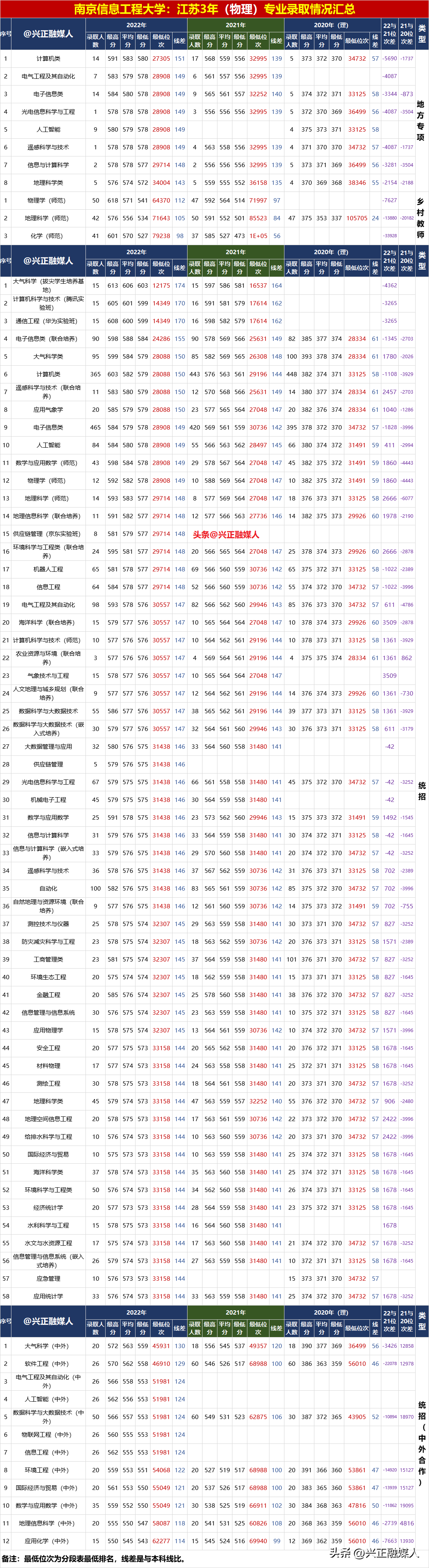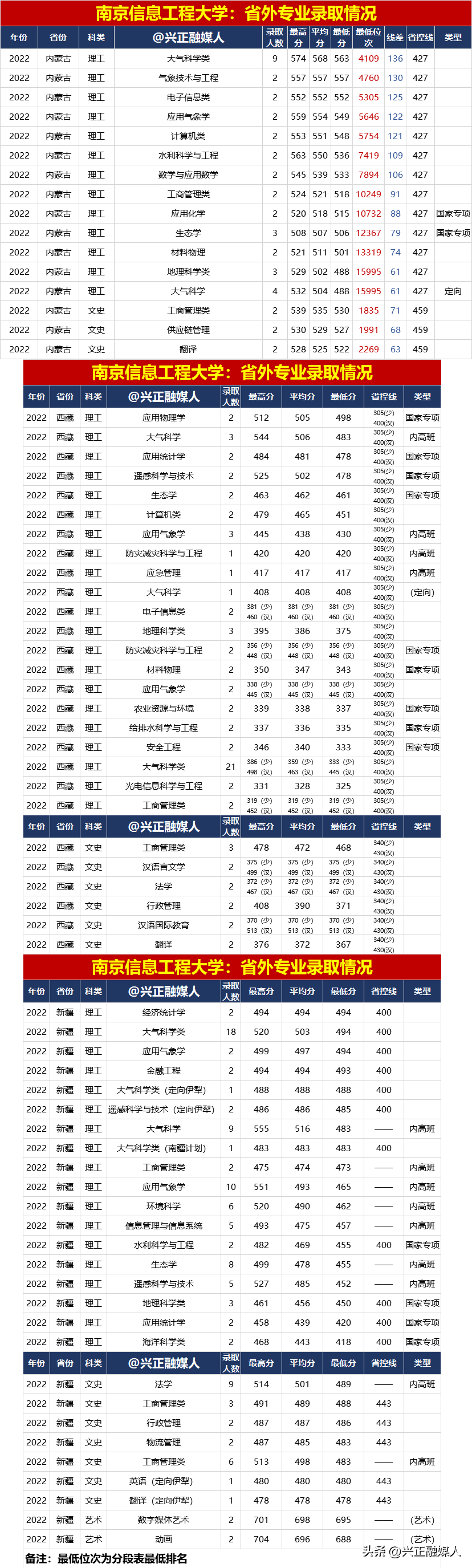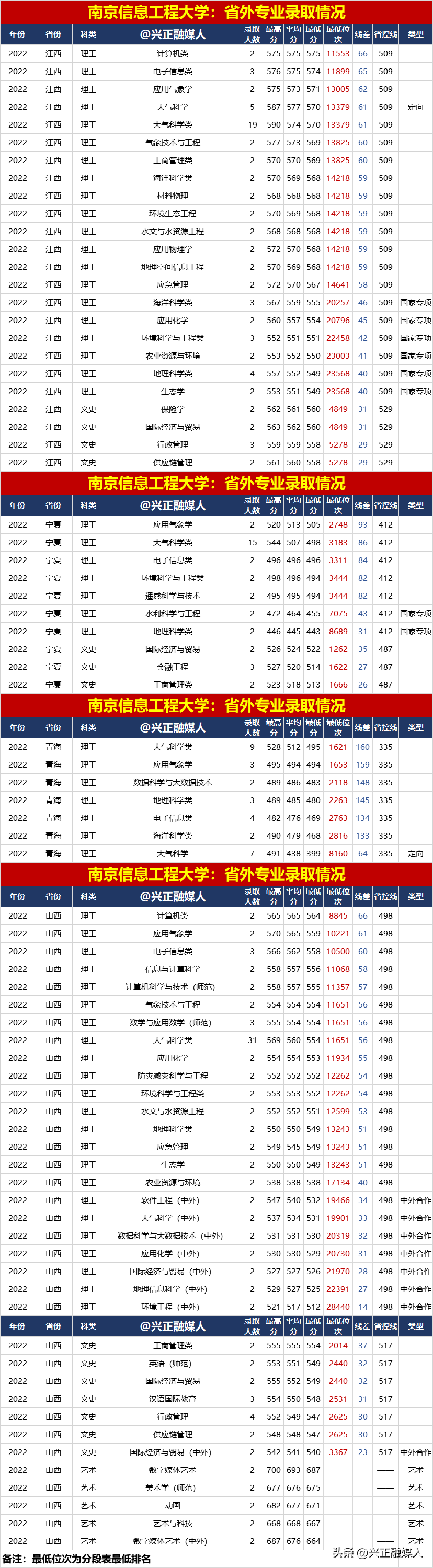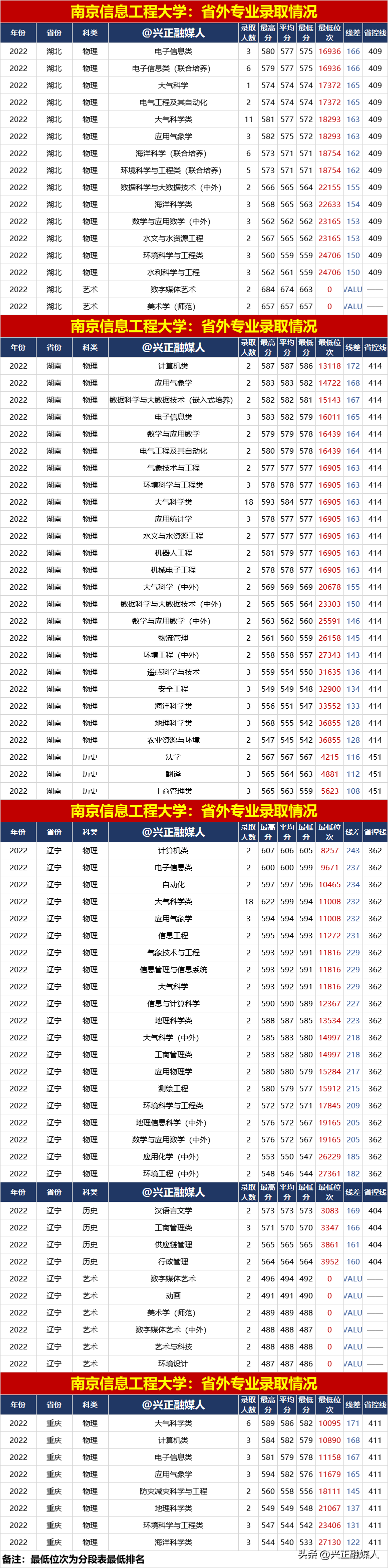 南京信息工程大學2022年分省分專業錄取匯總(內3外1),2023屆請收藏!