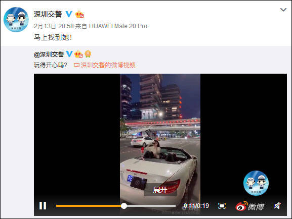 晚上18點49分,深圳交警將該視頻發布到微博;