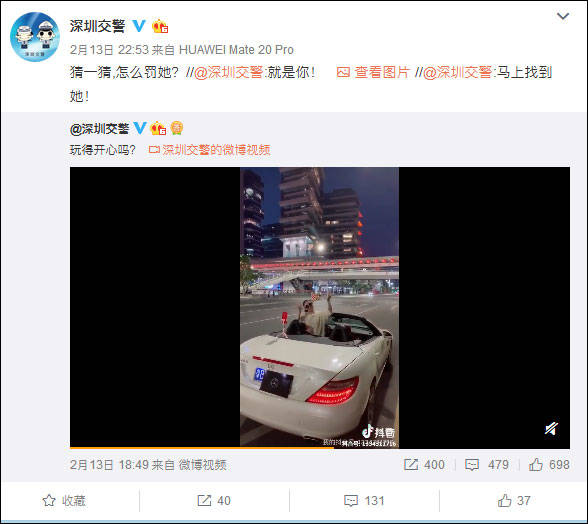 在2月13日凌晨接到網友舉報后,深圳交警隨即展開調查。