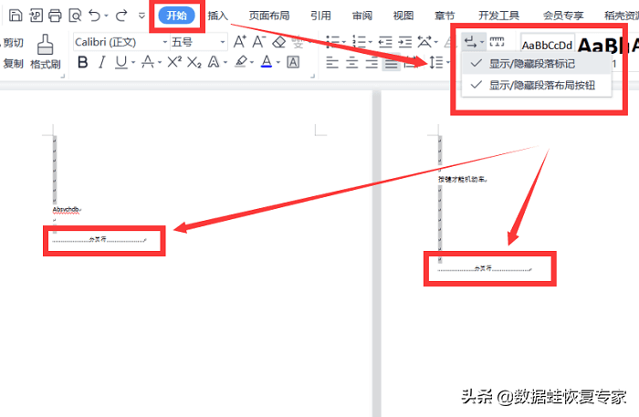 在文檔“開始”欄,找到“顯示/隱藏段落標記”,點擊后文檔就會在設置了分頁符的位置顯示分頁符的印記,如果分頁符很少的情況下,可直接按刪除鍵刪除。如果分頁符很多的情況下,可運用情況二的方法,在特殊格式中選擇“手動分頁符”,進行替換。