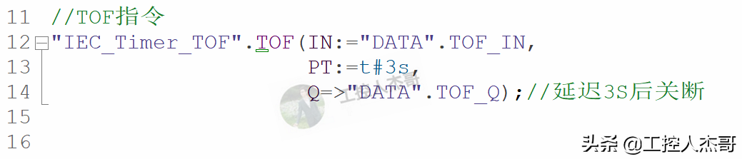 - 案例:通過TOF指令完成對某信號的延遲關斷,TOF指令與TON指令使用上面基本相同,只是功能相反,TOF是IN接通后Q立即輸出,當IN信號關斷后,PT開始計時,待達到設定時間后Q點停止輸出,需要注意的是,在PT計時過程中,若IN有變為1,則定時器復位,Q點任為1。
