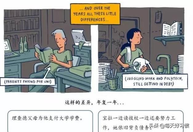 西蘭插畫家和漫畫家Toby Morris,創作的一個小漫畫“On a Plate”《盤子上》,描述了兩個在不同環境中長大的孩子,怎樣一步步走上完全不同的人生。