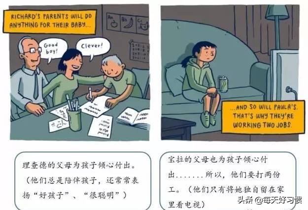 富人家的父母育兒理念更先進,他們知道怎樣教育孩子,陪伴孩子,還懂得鼓勵孩子,增加孩子的自信心,這些都建立在有空閑的時間。