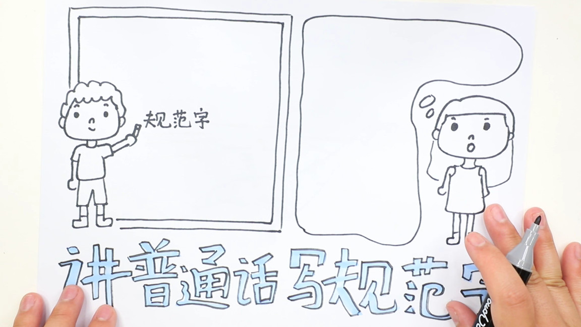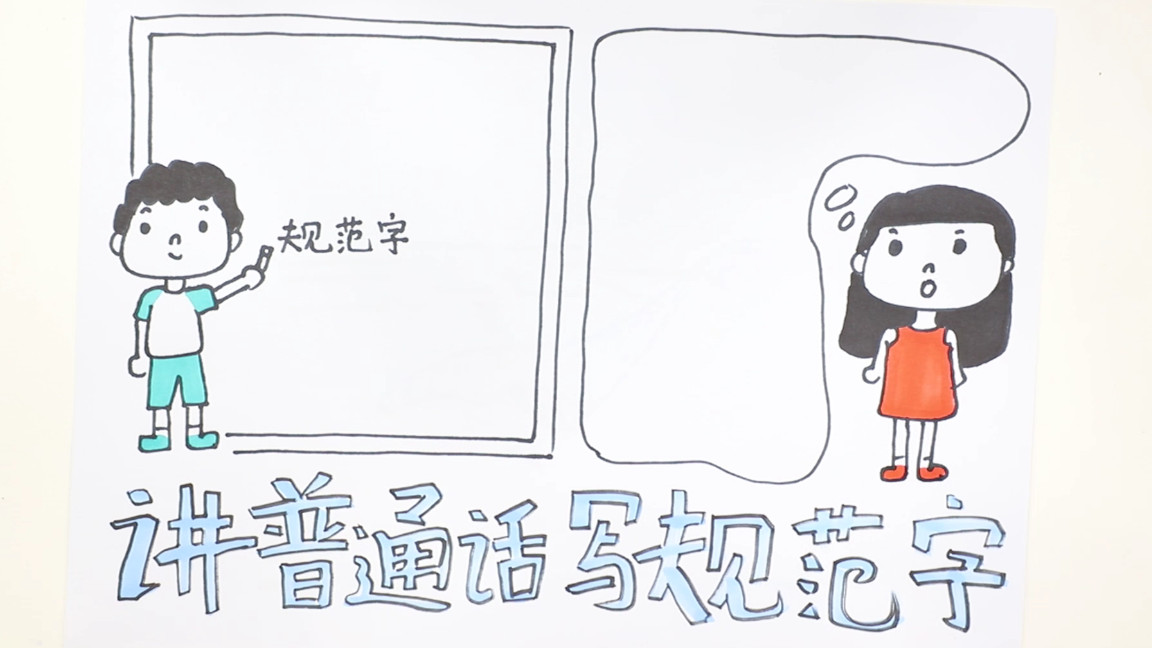 導讀畫法1①先寫上文字主題,然后畫上小朋友和畫上文本框;②開始上色,頭發涂上黑色,選擇喜歡的顏色涂上小朋友衣服;③黃色涂上文本框,綠色涂上黑板,另一個文本框涂上橘黃色。畫法2①先寫出的文字,然后畫上喇