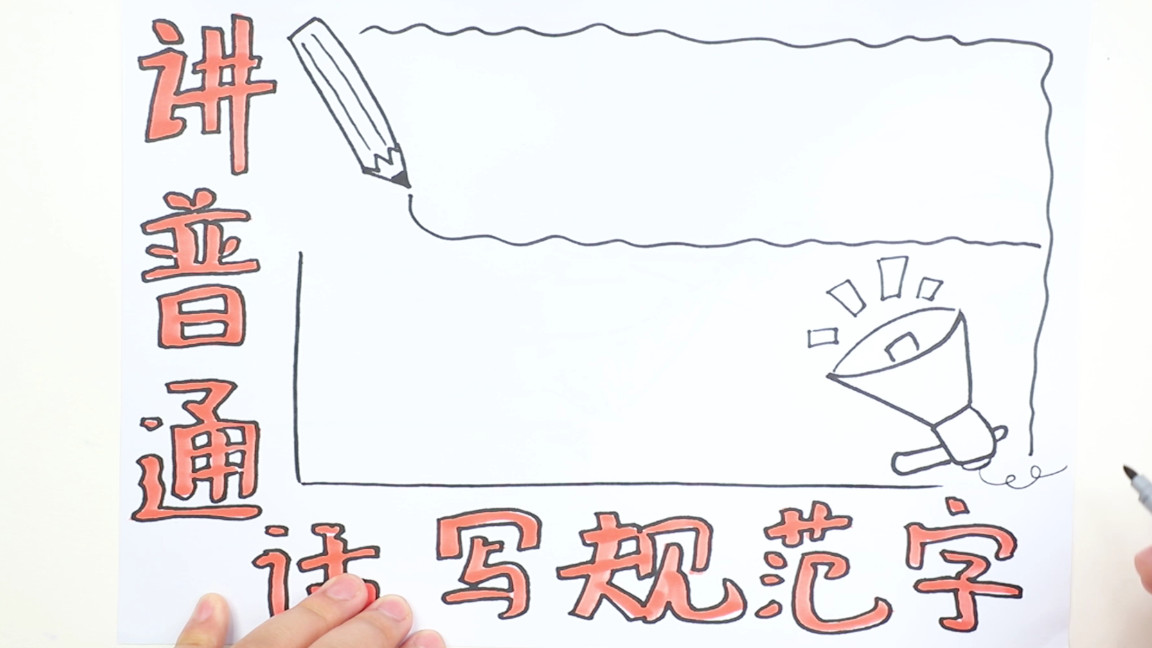 ①先寫出的文字,然后畫上喇叭和鉛筆,畫上文本框;