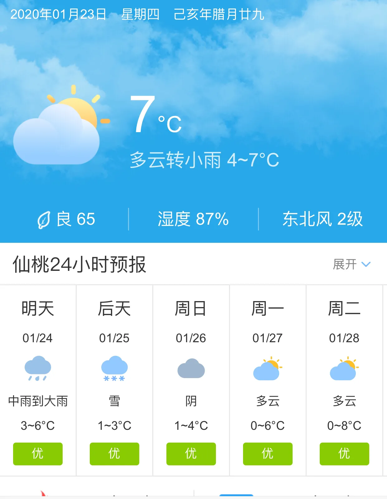 仙桃天氣預報 仙桃天氣查詢15天 發布者:丁原東 2023-07-01 導讀湖北仙桃明天24日起未來五天天氣預報來源天氣網 湖北仙桃明天24日起未來五天天氣預報來源天氣網 免責聲明:本文章由會員“丁原東”發布如果文章侵權,請聯系我們處理,本站僅提供信息存儲空間服務如因作品內容、版權和其他問題請于本站聯系 上一篇:正方形的判定 判定方法 下一篇:心有余而力不足 思路超前,實力不足 猜你喜歡 英國Good Hope醫院使用RFID技術追蹤資 讓“物聯網之父”告訴你什么是物聯網 廈門旅游攻略 交通 事業單位有哪些 事業單位的分類 四川建筑職業技術學院 學院歷史 山東司法警官職業學院 司法警校值不值 不客氣英語怎么說 使用直接語言 未來,物聯網將會影響商業的三種表現 最新文章 工行客服電話 工行24小時人工客服 黑鷹直升機 黑鷹直升機游戲下載 灰色褲子搭配什么顏色上衣 灰色衛褲最 solo是什么意思 solo網絡上是什么意思 歌聲與微笑歌詞 歌聲與微笑歌詞圖片 上岸是什么意思 上岸成功啥意思 準格爾旗天氣預報 呼市天氣預報7天 吉娃娃狗圖片 外觀與個性
