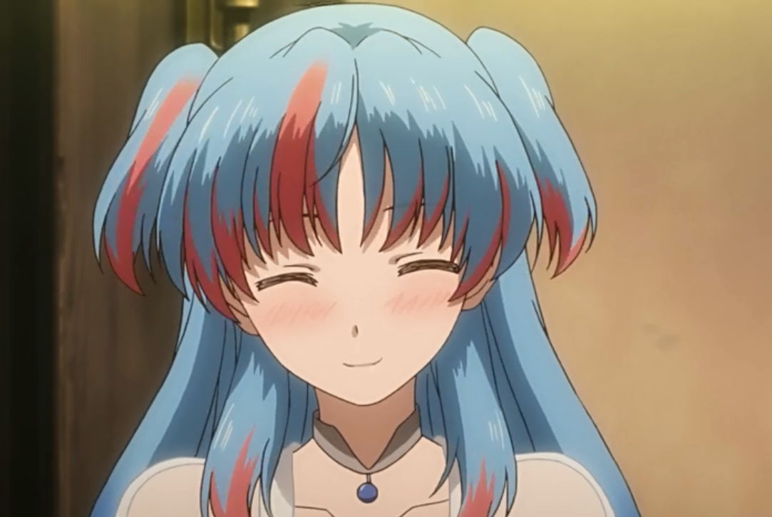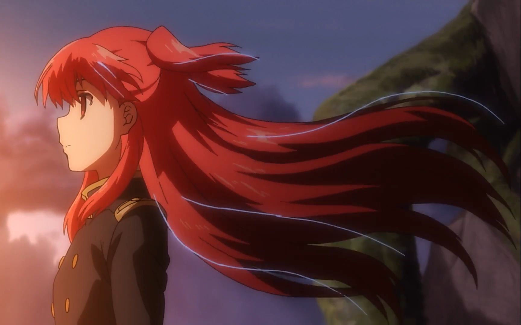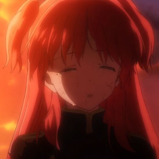 漸漸男主和女主在相處中產生了情愫,是啊,女主只是一個16歲的少女,正值情竇初開的時光,但是快樂是很短暫的,作為“特殊兵器”會有來自前世記憶的侵蝕,女主原來天藍色的頭發開始長出紅色。