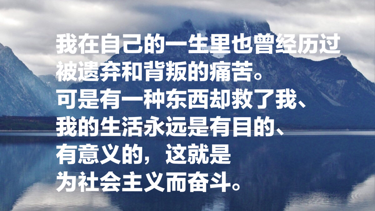 我在自己的一生里也曾經歷過被遺棄和背叛的痛苦。可是有一種東西卻救了我、我的生活永遠是有目的、有意義的,這就是為社會主義而奮斗。