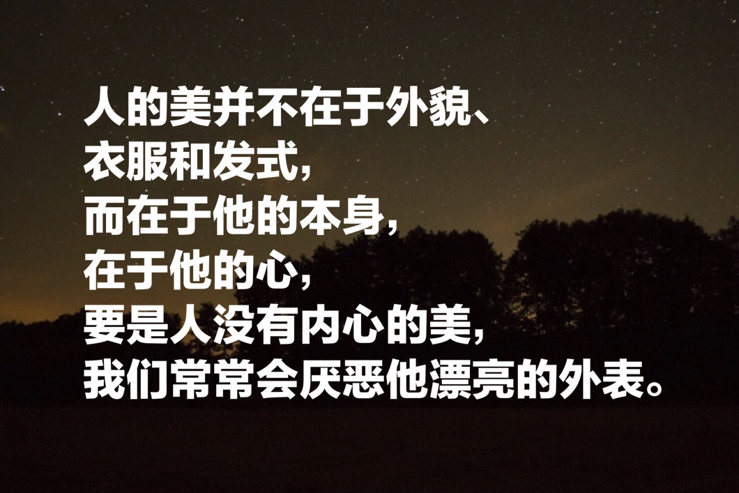 人的美并不在于外貌、衣服和發式,而在于他的本身,在于他的心,要是人沒有內心的美,我們常常會厭惡他漂亮的外表。