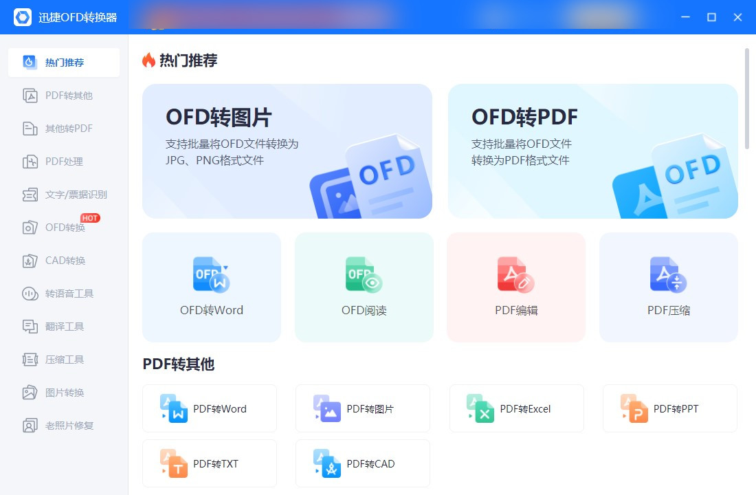 迅捷OFD轉換器,是一款專為ofd文件設計的軟件。它具有多種處理ofd文件的操作,不僅可以用來閱讀ofd文件,還可以將它轉換成其它文件格式,方便我們對它進行編輯等操作。