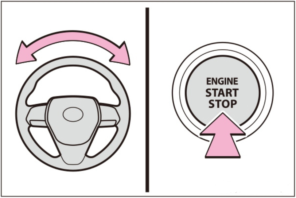 (2)檢查并確認換檔桿置于P檔。左右轉動方向盤的同時,按下發動機開關。