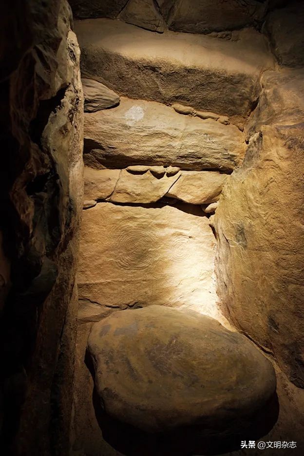 ■ 每年冬至,太陽從遠山山頂升起,正好能夠穿過甬道射到紐格蘭奇古墓石室的地面,給終年黑暗的石室以及安葬在石室里的死者帶來光明。
