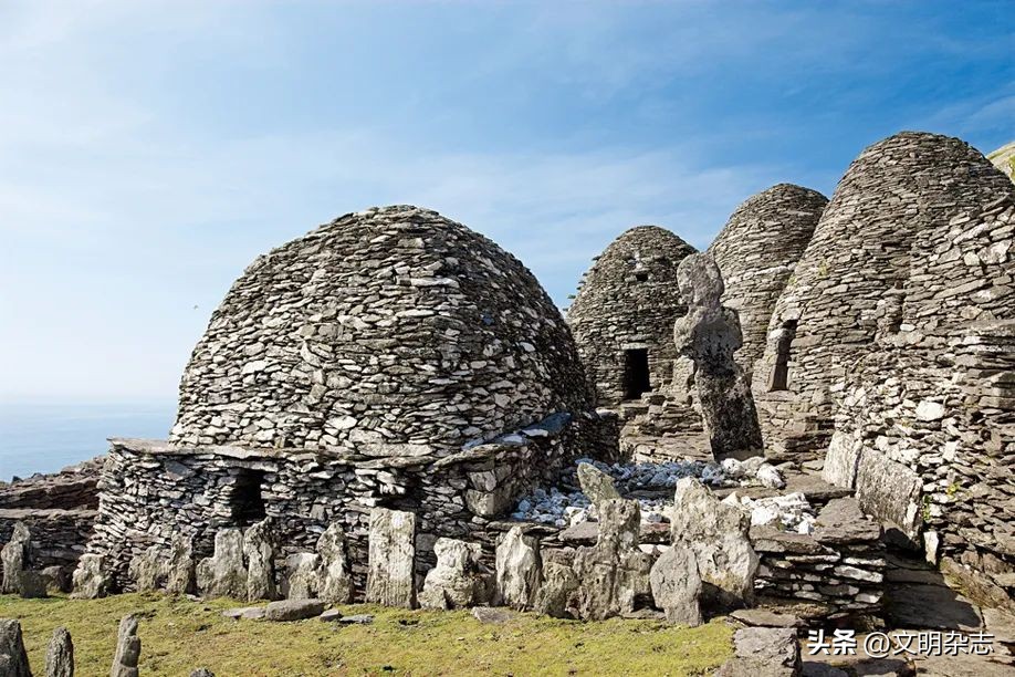 ■ 斯凱利格·邁克爾島上的房屋形如蜂窩,沒有絲毫修飾痕跡,沿凹凸不平的巖面而建,房屋側墻或者上方開有小洞以采光。