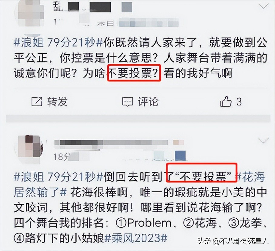 但最終《花海》連800票都沒拿到,看來美伊禮芽和龔琳娜手里拿的又是“祭天”劇本了。