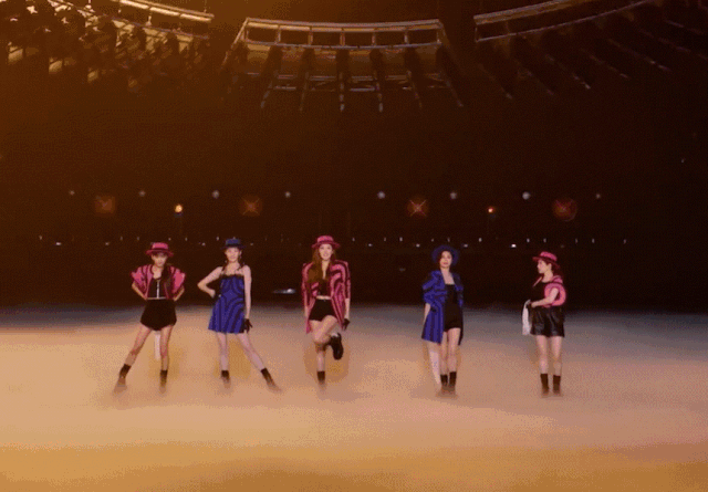 在大全景里就更明顯了,其他4位姐姐卡不準拍子,做動作不整齊。