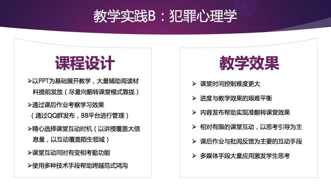 周凌說,在課程信息量大、偏向社會科學教學的犯罪心理學課程的課程設計中,在線教育工具的使用會相對減弱。“絕大多數時間我得講課,課堂互動時間不好掌握,而且大量互動之后會出現知識點覆蓋的問題,我們把大量內容放到課后交給同學自己,在上課也會做針對性的重點答疑討論。”