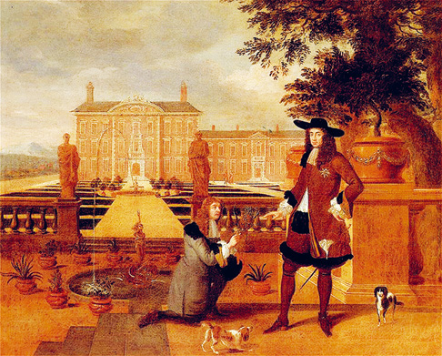 在英國,亨德里克·丹克茨于1675年至1680年間創作了一幅著名畫作,在畫面中,國王查理二世站立在右側,左側則跪著一個男人,可能是他的園丁約翰·羅斯,他向國王遞上了一顆鳳梨。這幅畫據說是為了紀念在英國成功種植出的第一顆鳳梨而創作,不過它作為一種進口水果早已出現在英國了。事實上,英國最早的鳳梨植株是由彼得·德拉考特于1719年寄給里士滿(薩里)的馬修·德克爾爵士的,第一批“英國”鳳梨也正是從那里的溫室中培育出來的。