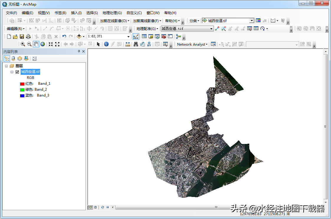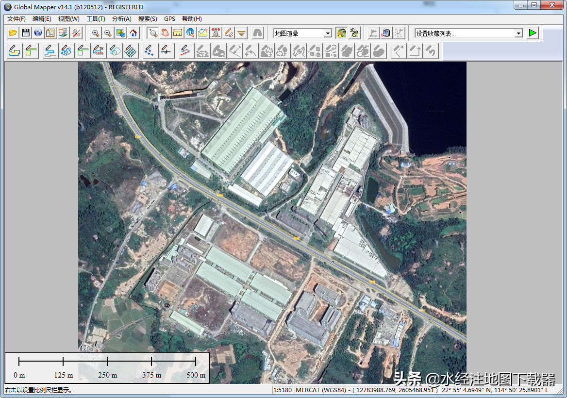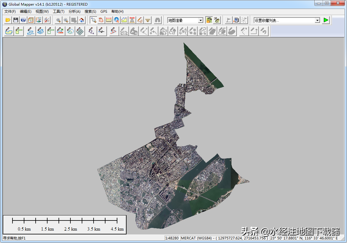 下載完成之后會自動打開導出的衛星圖所在的目錄,下載的衛星圖可以用專業的軟件打開,比如Global Mapper。