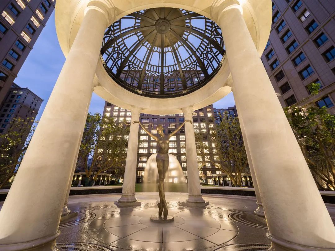 配合由波蘭藝術家Malgorzata Chodakowska專門為「融創外灘壹號院」定制的國內首座“執扇的東方女孩”和國內第二座“西方芭蕾舞者”雕塑。一起造就了融創外灘壹號院的貴族園林。