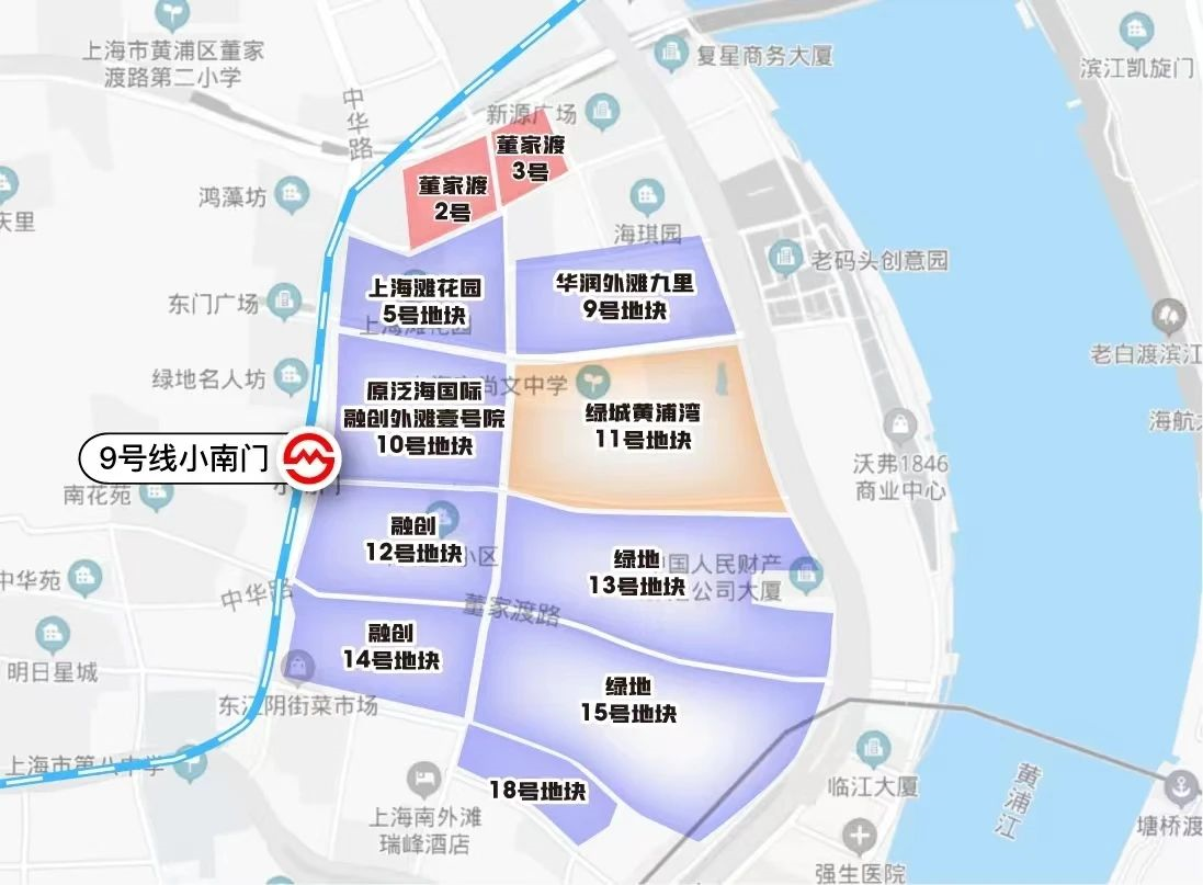 綠城外灘蘭庭已經入市了,大家知道在董家渡,融創外灘壹號院還有兩塊城市更新的地塊。
