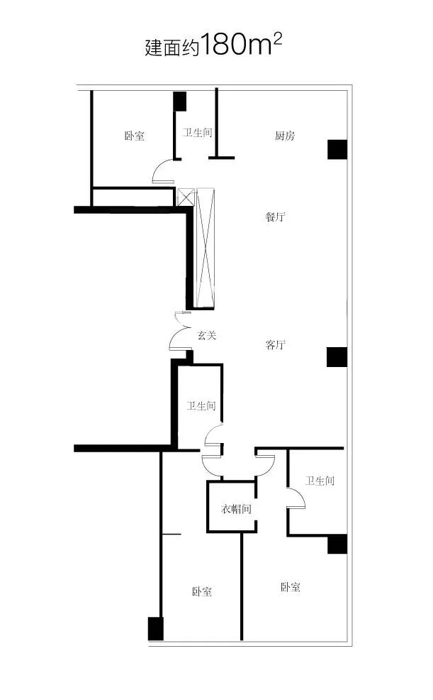 王字布局保障了6棟樓的間距,最大可達約100m,且樓棟全部南北向排布,保證每一棟的觀景采光效果。