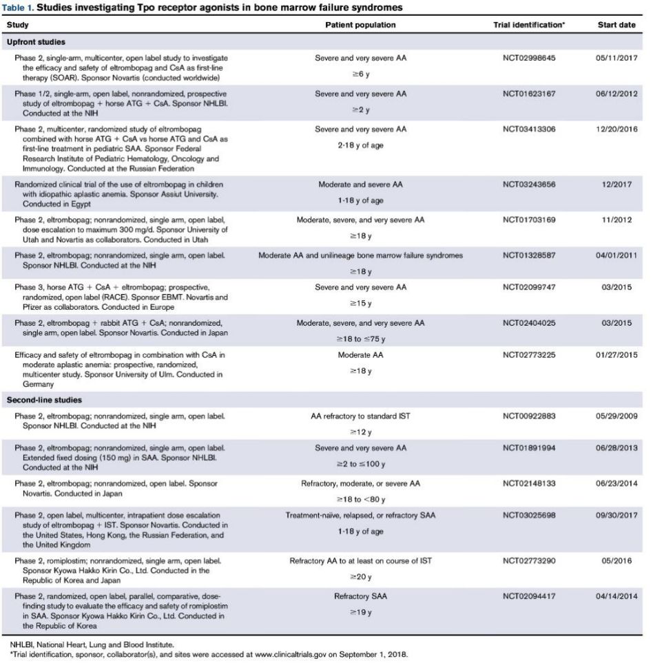 目前,眾多TPO受體激動劑治療骨髓衰竭性疾病的臨床試驗也正在進行當中(表1)[3]。作者本次介紹艾曲波帕治療難治性SAA方案優化及其相關遺傳學事件研究的最新結果[4]。
