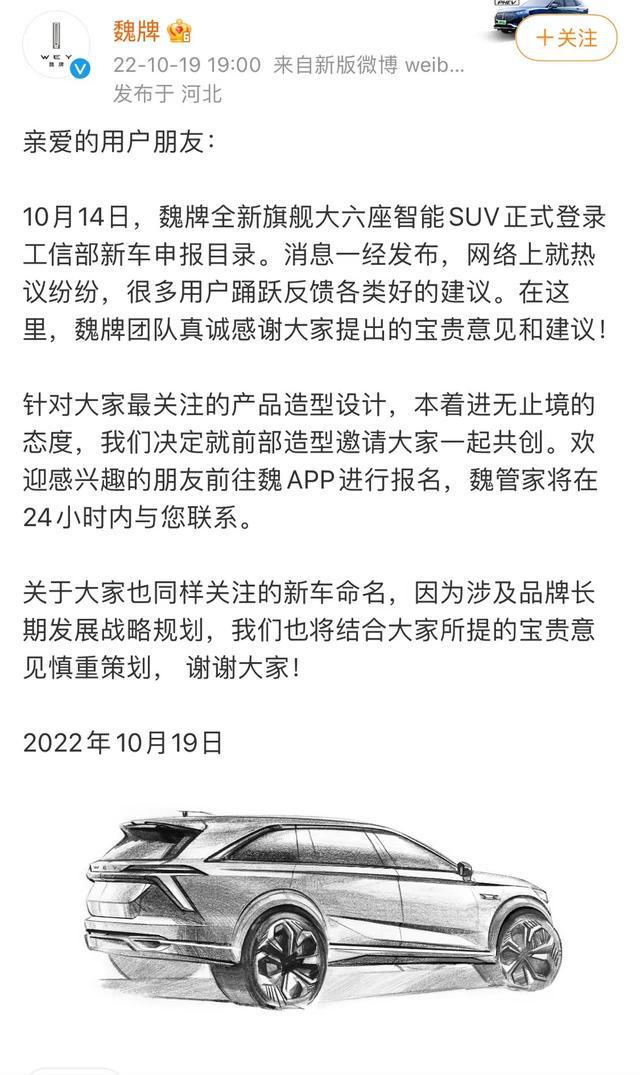 對于這樣一款全新的車型,大多數網友表達出不滿,尤其是前臉造型以及命名方式。針對網友們對魏80的看法,魏牌官方表示,就前部造型邀請大家一起共創。