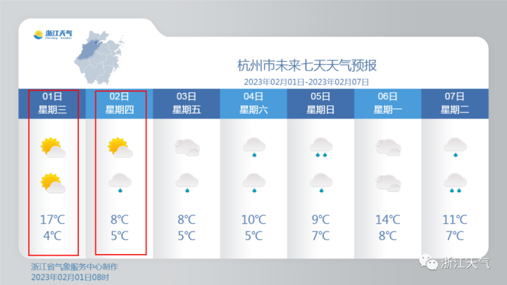 具體到杭州天氣,今天(2月1日)和明天,受冷空氣影響,杭州將有一次北風增大和降溫過程。