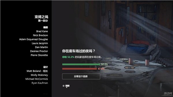 這個系列的玩法一直很別致,到了第三季也不例外。我們大多時間都在像看電影那樣觀看劇情,只有到一些關鍵點才能通過對話影響劇情走向。每一次選擇都會改變后續故事的呈現方式,欣賞不同的對白,并建立不同的人物關系。對話選擇都有時間限定,計時在8秒左右。8秒的時間,需要我們回想對方的行為目的,查看每個選項,思考每個選擇的后果。緊張的時間,BGM氛圍的營造,喪尸隨時可能來襲的情況,都讓玩家切實感到一種壓迫感。
