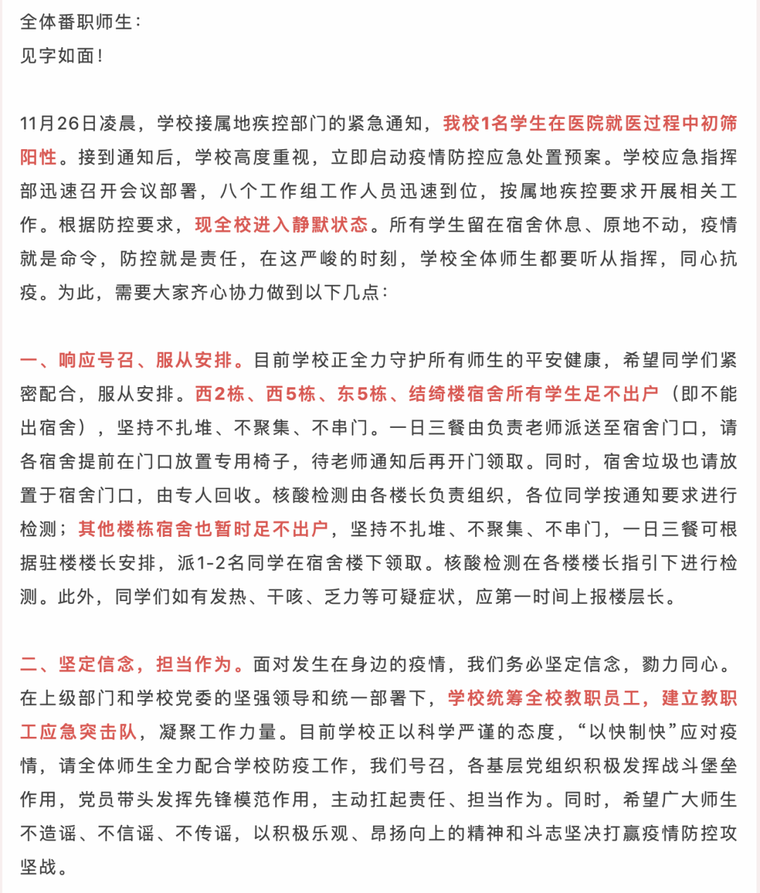 部分高校也出現了核酸異常