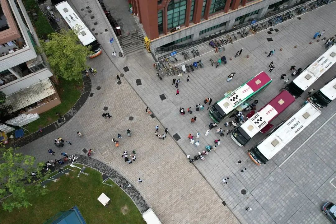 學生持24小時內核酸檢測陰性證明,健康碼“綠碼”及當天抗原檢測陰性證明,有序排隊等候上車,每輛車都分配有1名負責老師,跟車幫助大家順利返鄉。