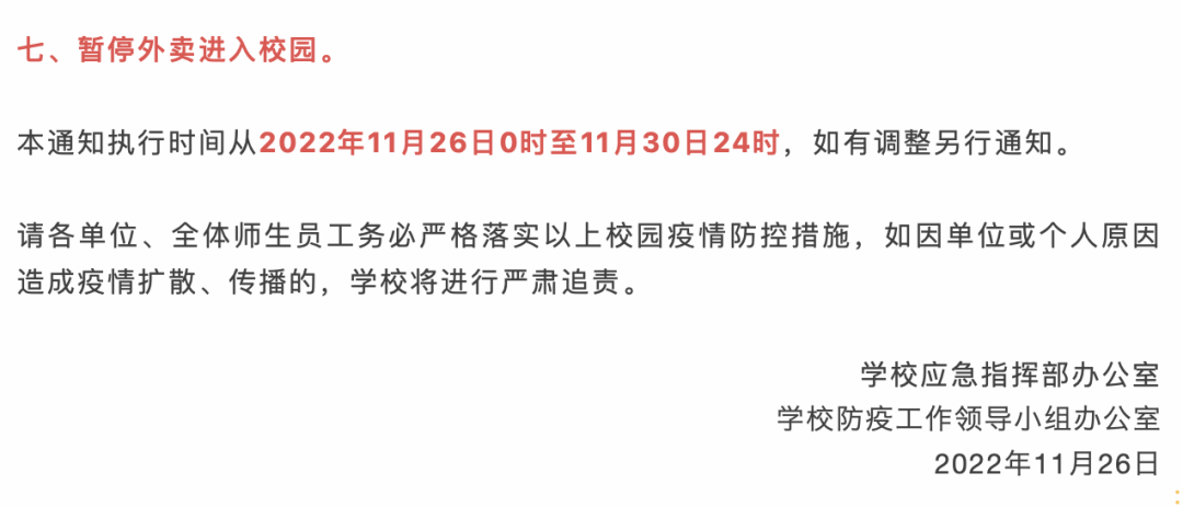 加強校園疫情防控,暫停外賣進入校園