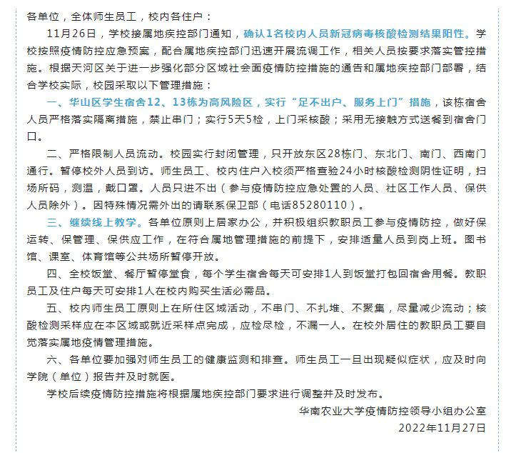華農接屬地疾控部門通知