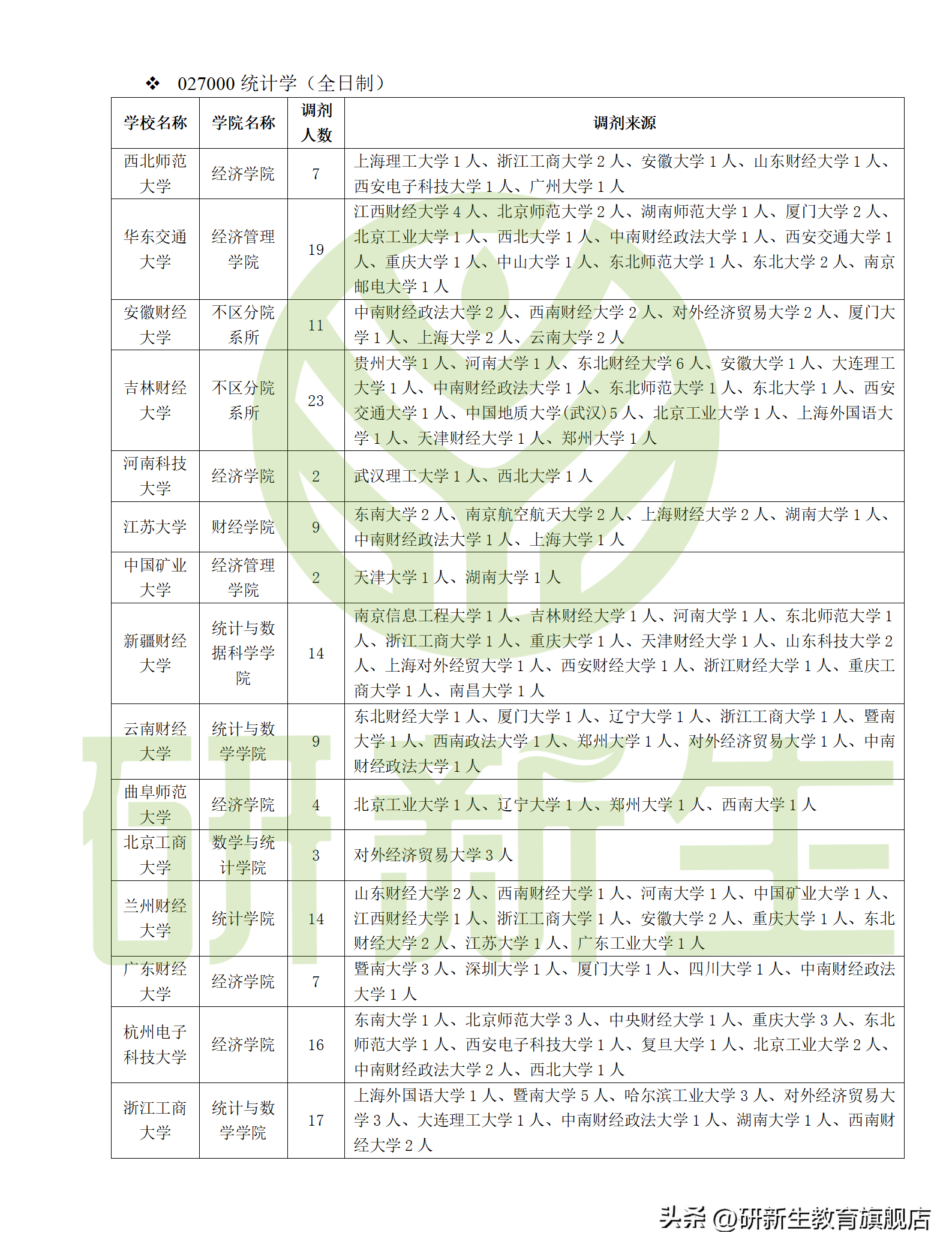注意:因展示篇幅有限,只給大家截取了統計學專業(全日制)的調劑錄取人數及調劑來源。