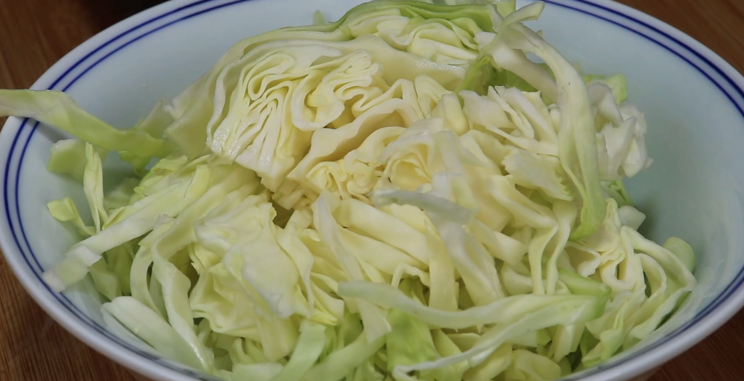 1、包菜絲要切得稍微細一點,這樣吃起來會更美味。