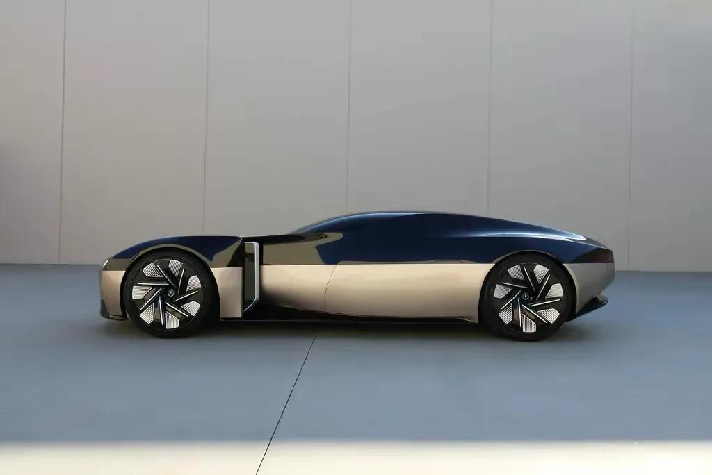 而Anniversary車身采用了一體化設計,車門和門把手都做了隱蔽式處理,和車身完美融合一體,整個車身造型低矮修長,運動感強勁。