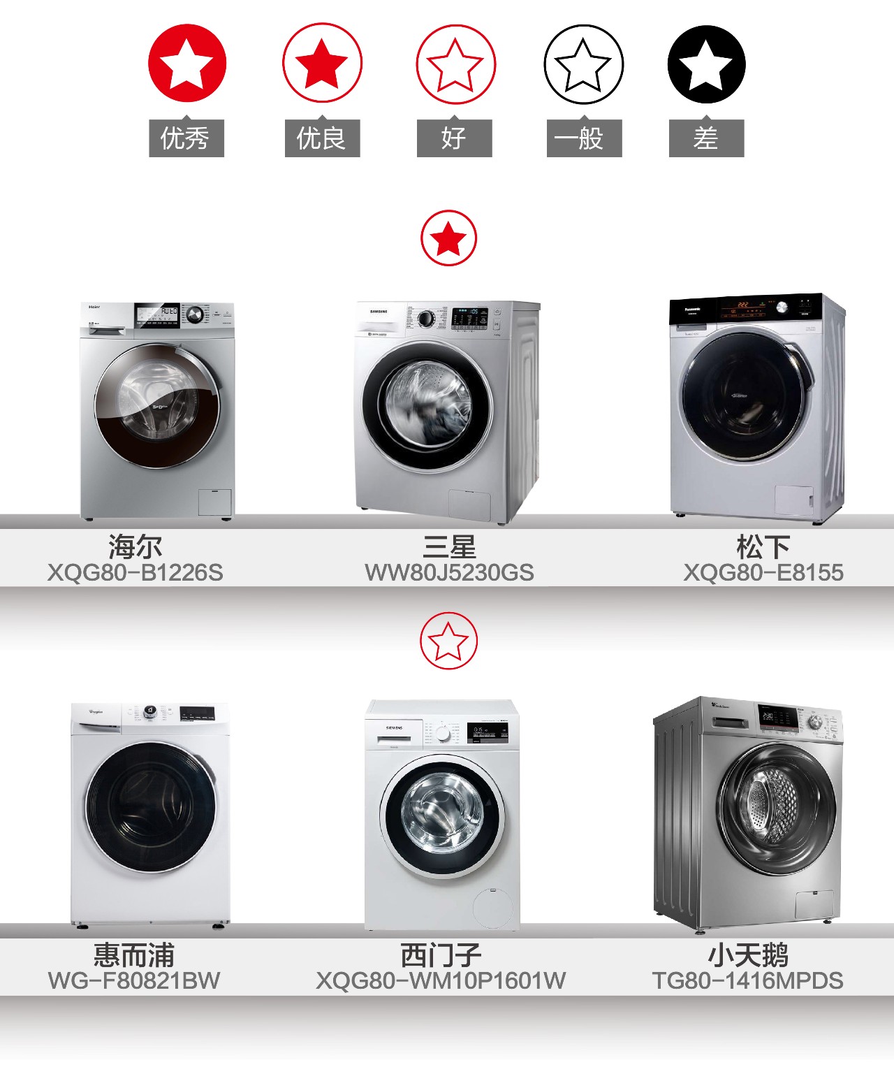 2、惠而浦、西門子、小天鵝表現一般,評級為好。