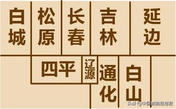 第七張極簡地圖是吉林省地圖,從圖上看,吉林省的地級行政區劃就像一把小手槍。白城市是槍口,松原市是槍管,長春市和吉林市分別是最重要的子彈各擊發位置,體現了長春市的龍頭作用和吉林市推動全省發展及兩市在吉林省的重要性。四平市是扣機。
