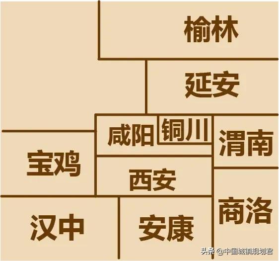 第五張極簡地圖是陜西省地圖。從極簡地圖來看,陜西省的中心就是省會西安市,咸陽市與銅川市都在西安市的大框架里,應該考慮并入西安市。從圖上看,陜西省的副中心城市應該是寶雞市(第二大城市)與榆林市(經濟第二強市)。