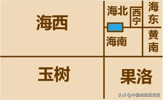 第六張極簡地圖是青海省地圖。從圖上看,海西州、玉樹州和果洛州面積太大了,占了青海省的絕大部分。但是整個青海省都是圍繞著青海湖,周邊分布著海西州、海北州、海南州、海東市。