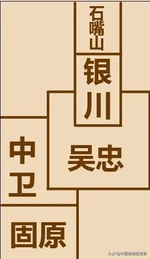 第十一張極簡地圖是寧夏回族自治區地圖。從圖上來看,地理幾何中心在吳忠市,但是全自治區的中心城市卻是自治區首府銀川市。