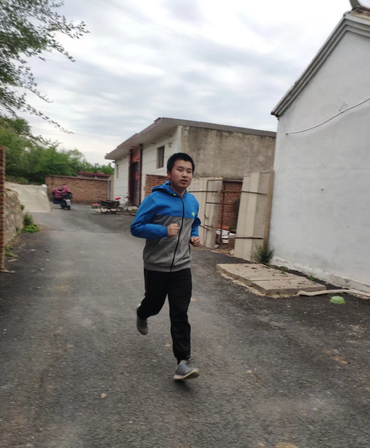 因疫情居家學習,張宇杰仍堅持跑步。受訪者供圖