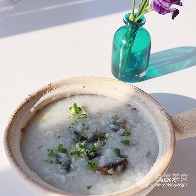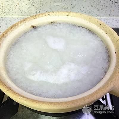 5、粥快起鍋時放入肉茸,皮蛋和姜片。