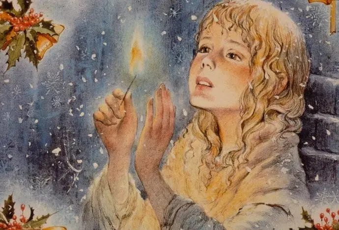 “奶奶!”小女孩兒叫起來,“啊!請把我帶走吧!我知道,火柴一滅,您就會不見的,像那暖和的火爐,噴香的烤鵝,美麗的圣誕樹一樣,就會不見的!”