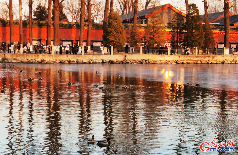 冰面消融,春意漸濃。近日,在北京市西城區北海公園內,眾多市民游客駐足觀賞太液池湖面上“群鴨戲水”的景象。每年立春之后,隨著天氣轉暖,太液池的冰面開始消融,鴛鴦、綠頭鴨等水禽泛波嬉戲、游水覓食,春日畫卷徐徐展開。據悉,隨著冰層開始融化,北海公園冰場隨即關閉,不少市民游客前往冰場享受冰面上的“最后狂歡”。(光明網實習記者王蕾 文/圖)