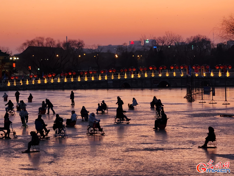 人們在北海公園冰場享受冰面上的“最后狂歡”。