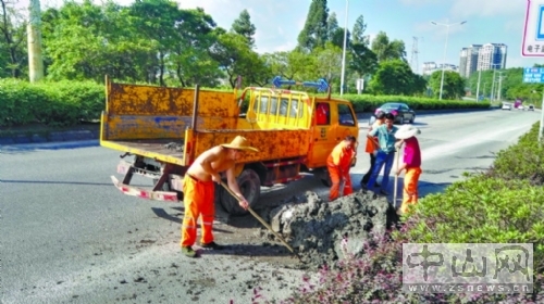 去年12月8日,大約兩公里長的南外環凱茵路段一夜間變成“麻子路”,臉盆大小的瀝青結塊給道路帶來極大的安全隱患。經過城管綜合執法局的調查,最終確定此事由深圳市市政工程總公司中山翠亨快線項目部拉運瀝青的泥頭車所為。